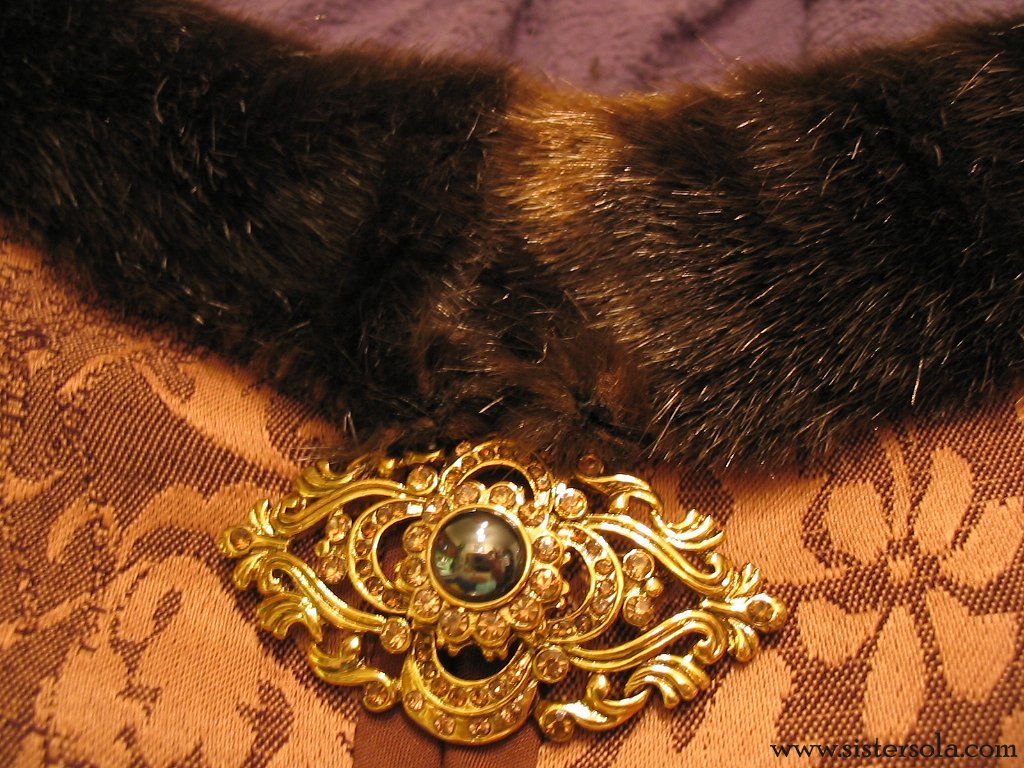 Finished coat. Ended up having to give up on trying to dye the polyester jacquard. I've dyed it 5 times now, and it never gets any darker, no matter how much dye I use or how much time I leave it in. Too bad, because the texture and pattern of it was so perfect! No pics yet, but maybe this weekend if it ever stops raining. The new fabric is a rayon jacquard, with a beigey-brown mixed with a darker brown in a kind of tiny wallpaper floral pattern (hard to describe). I'm so in love with the fake fur I got though, it looks and feels so real, like mink or something! Time to cut out and sew coat: 11 hours. | |