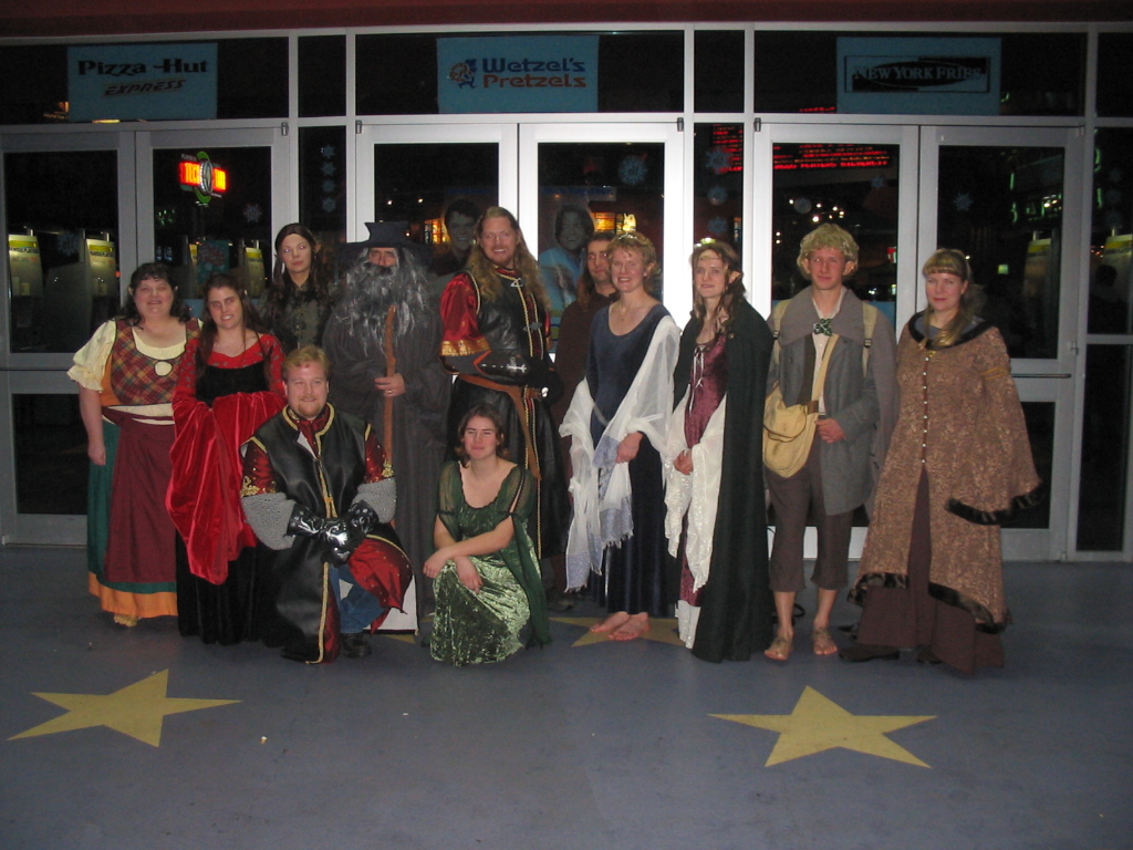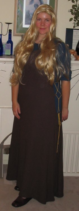 I ended up getting some nice dark brown 'desert boots' which I was really pleased with - the kind of remind me of the little boots Eowyn wears with the white Edoras dress from the Two Towers. You can sort of see them in this photo. | |